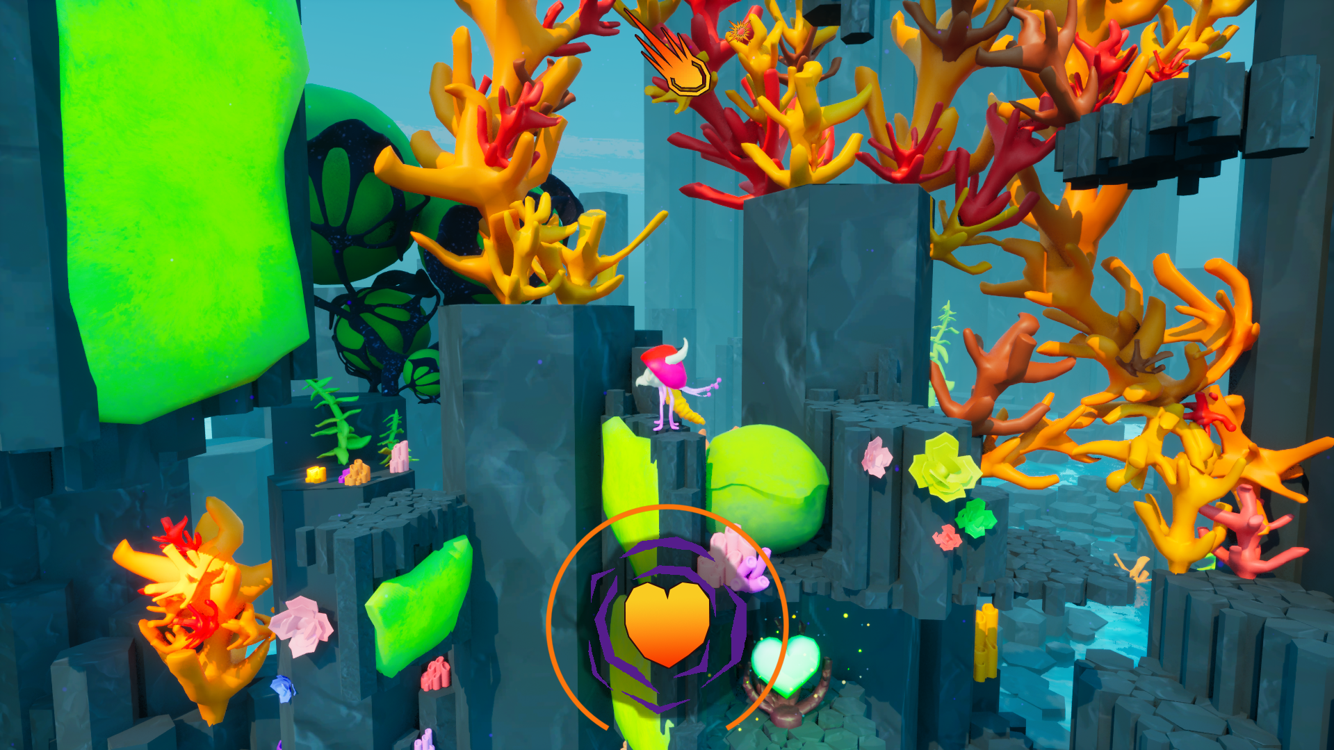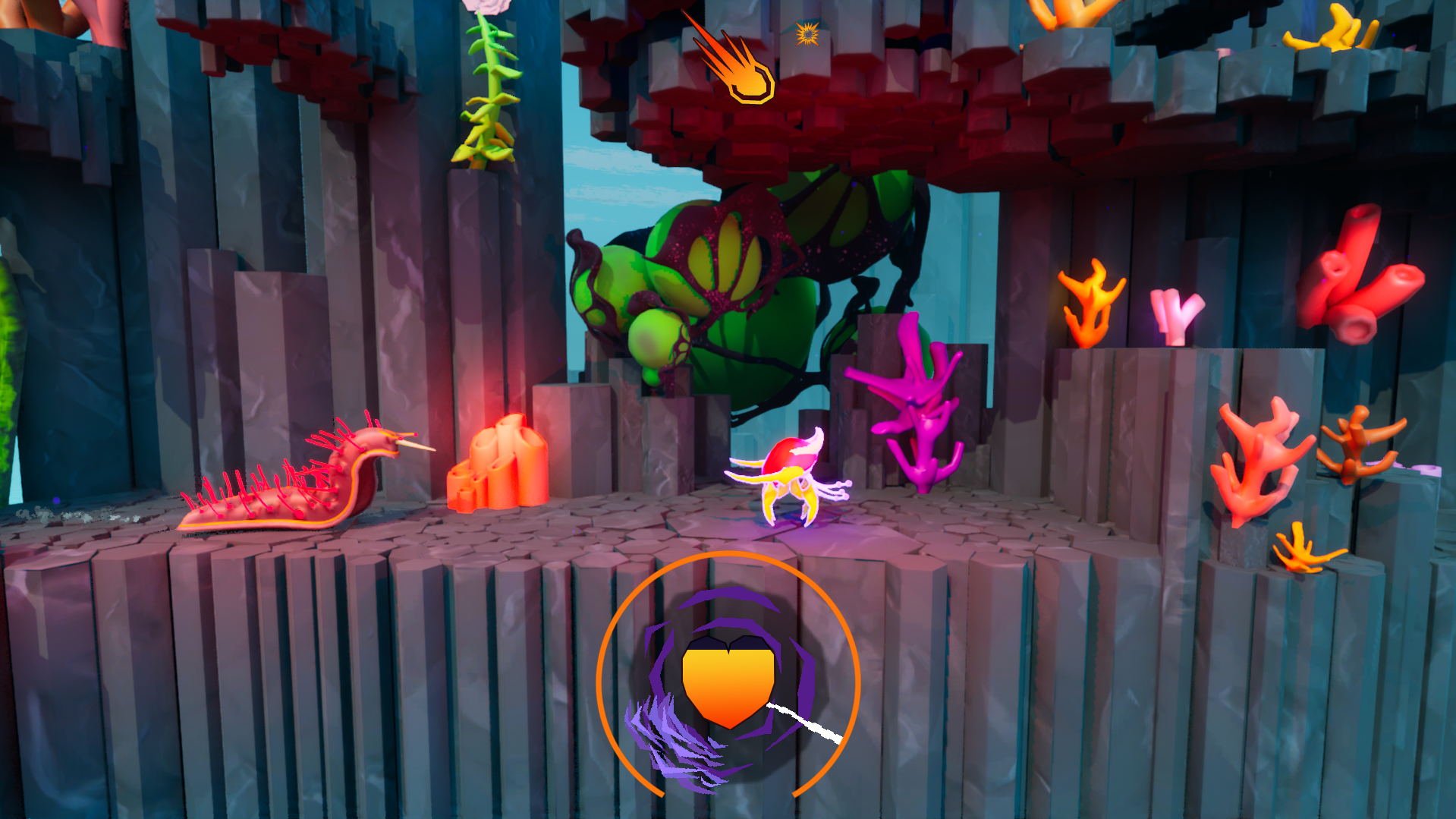 A combat-platformer where you play as a jellyfish that magically fused with the horned skull of an aether-wielding owl. Unable to return to your watery home you must find your place on the strange surface by channeling your new powers to mold your squishy body.